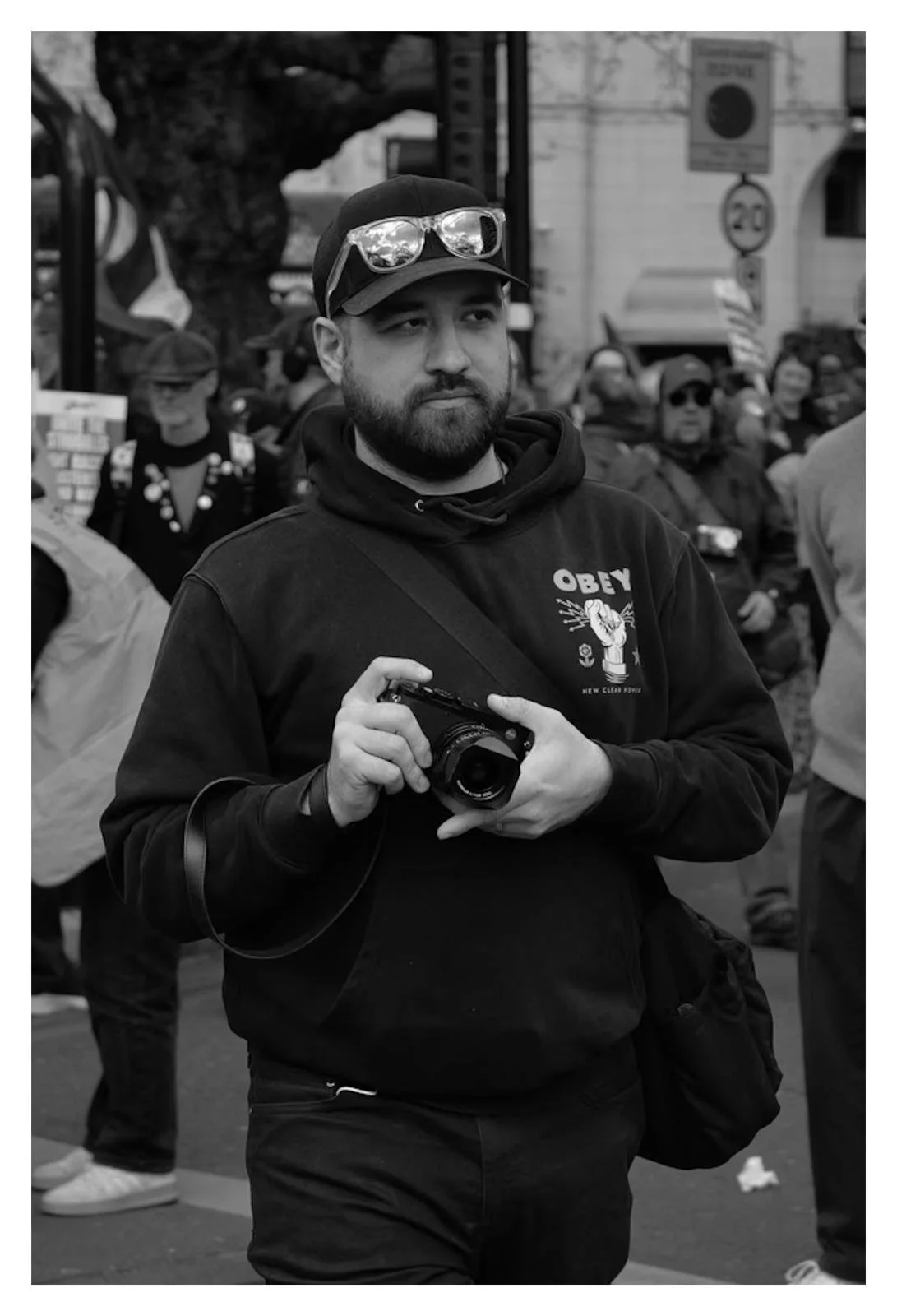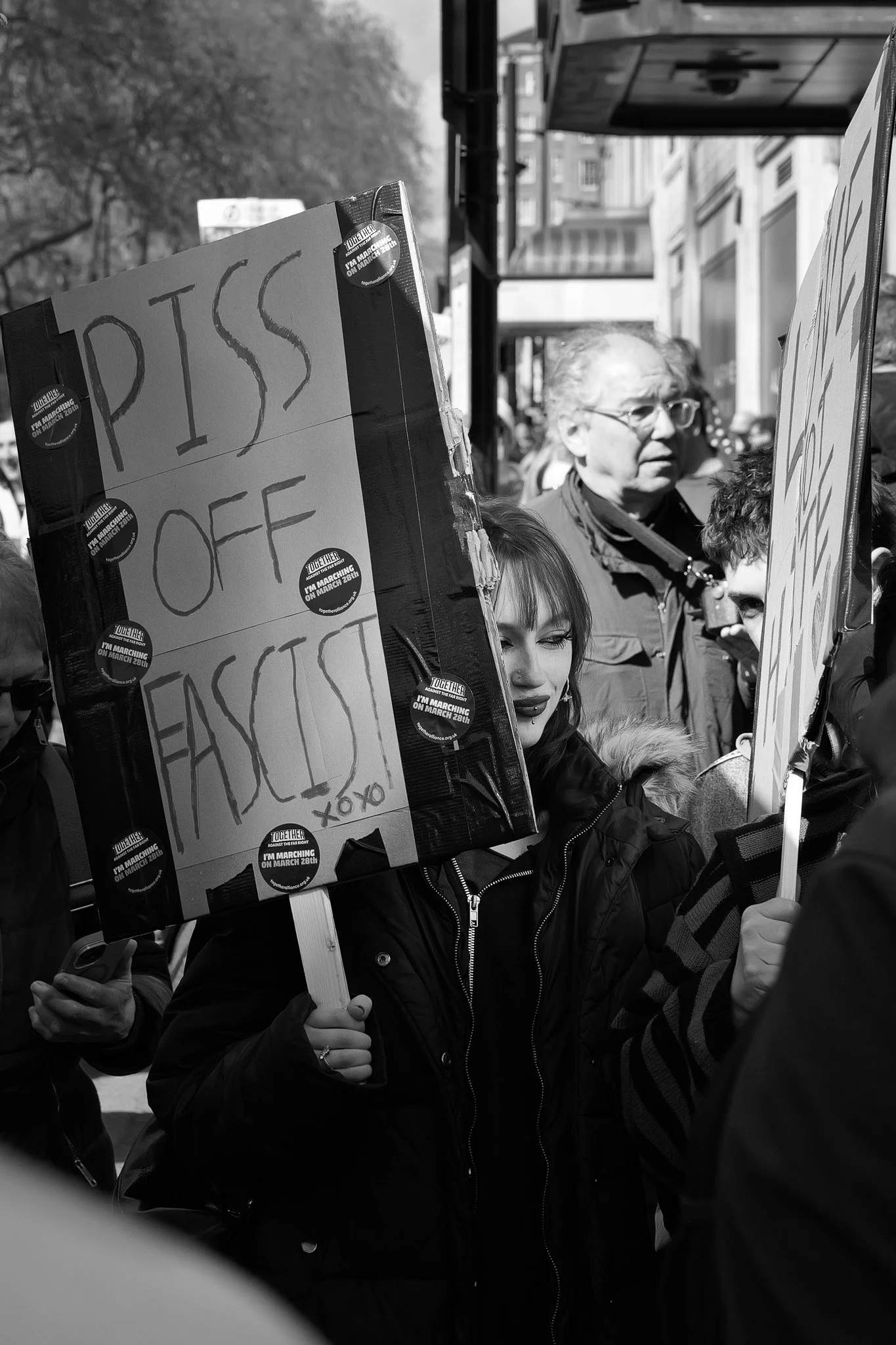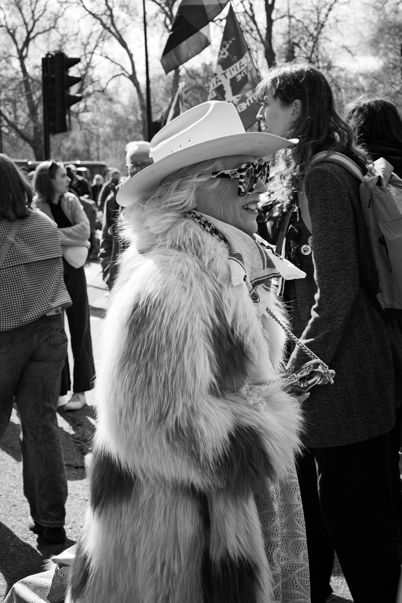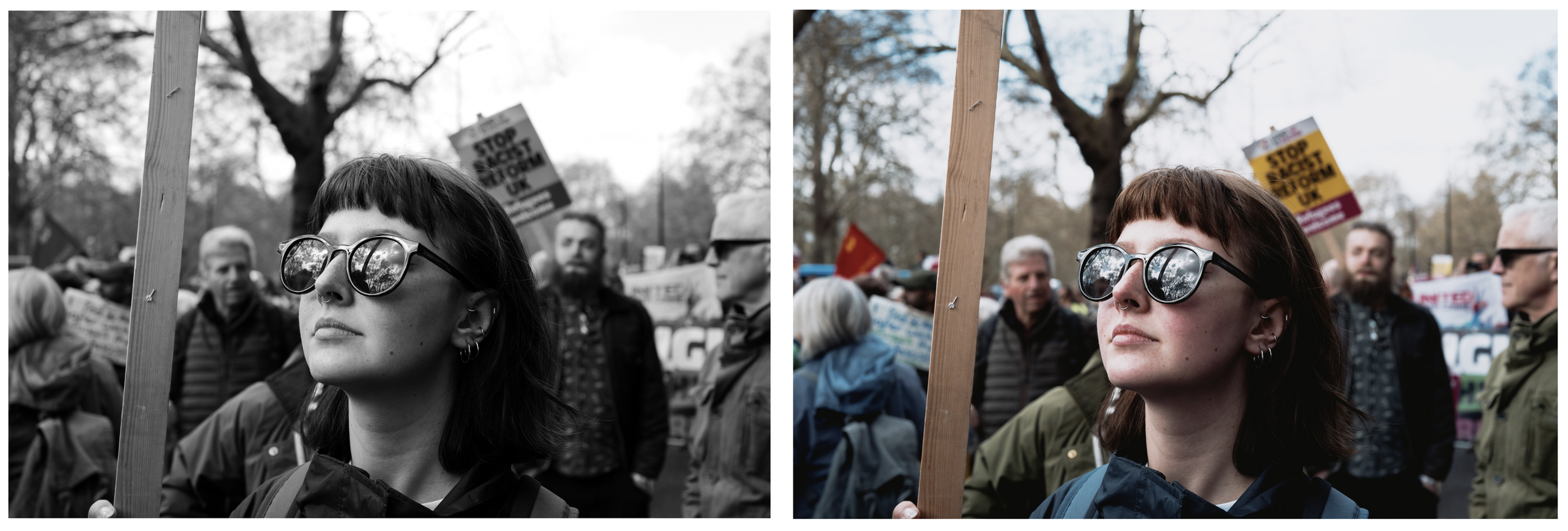 We were going to keep pounding the pavements around Oxford Street and Soho, but we decided to document the Together March was happening that day, as luckily for us, it was just around the corner on Park Lane. It turned out to be the perfect test for the cameras. A moving crowd, unpredictable subjects, and a bit of chaotic atmosphere.