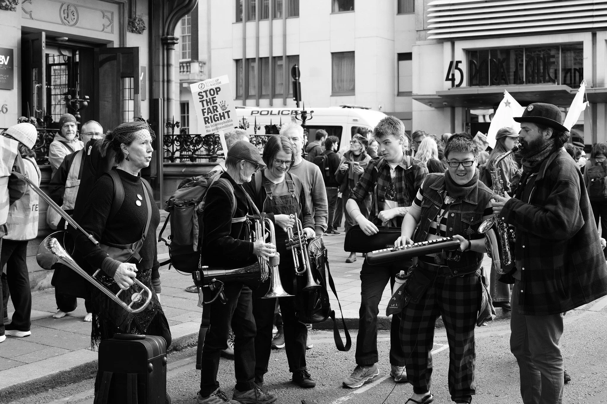 There were a few moments where I wished I had more width though. The punk waving the anarchist flag, for example. I couldn't get the whole flag in the frame and I couldn't step back because it was too crowded. With the 28 I'd have got the framing I was after.