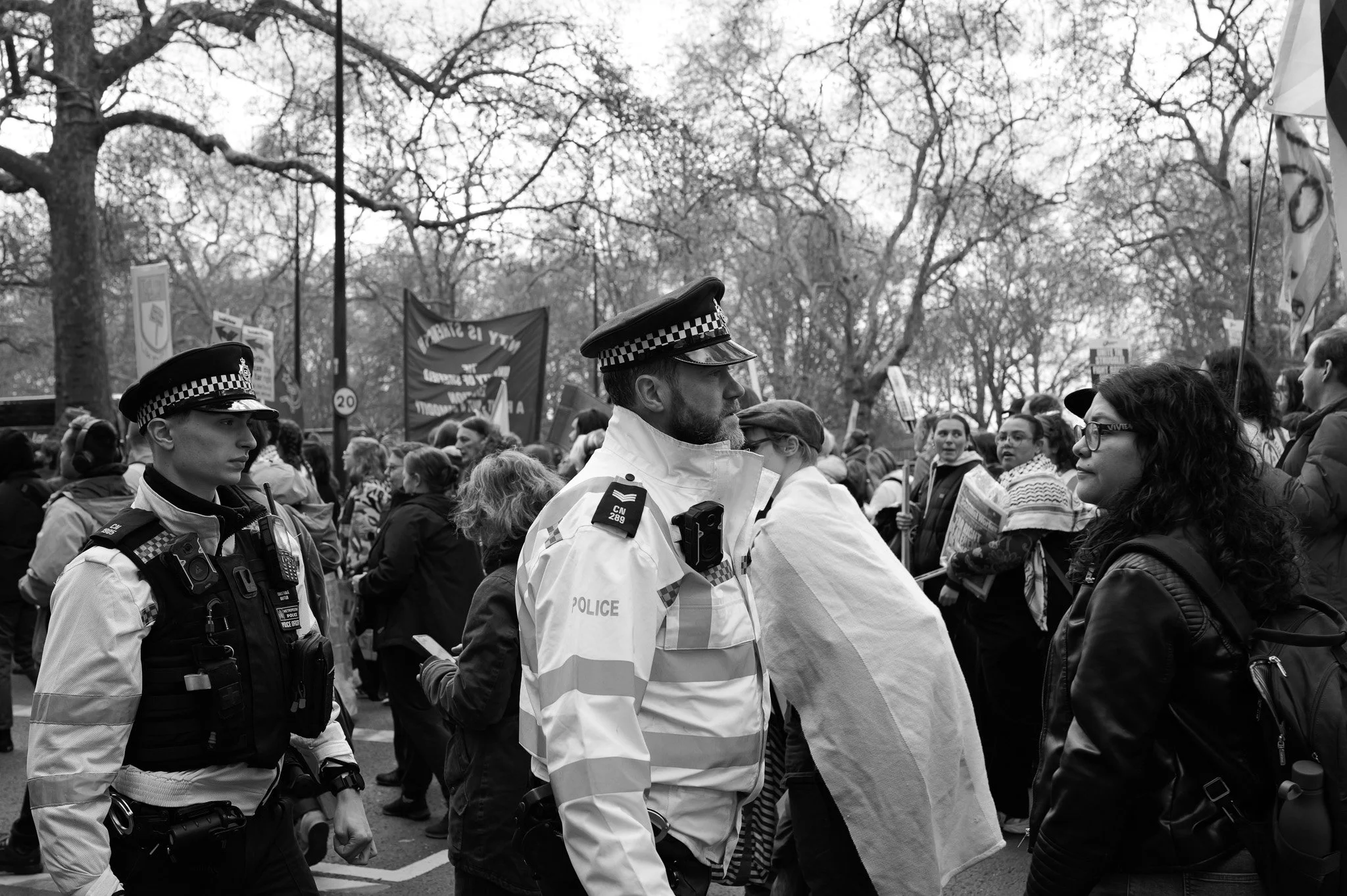 The 43 felt more natural to me. It's often described as the focal length your eyes see, and from a documentary perspective for the march it was mostly a good fit. I spent most of my time in the crowd with the 43 and got most of my favourite shots from the day with it.