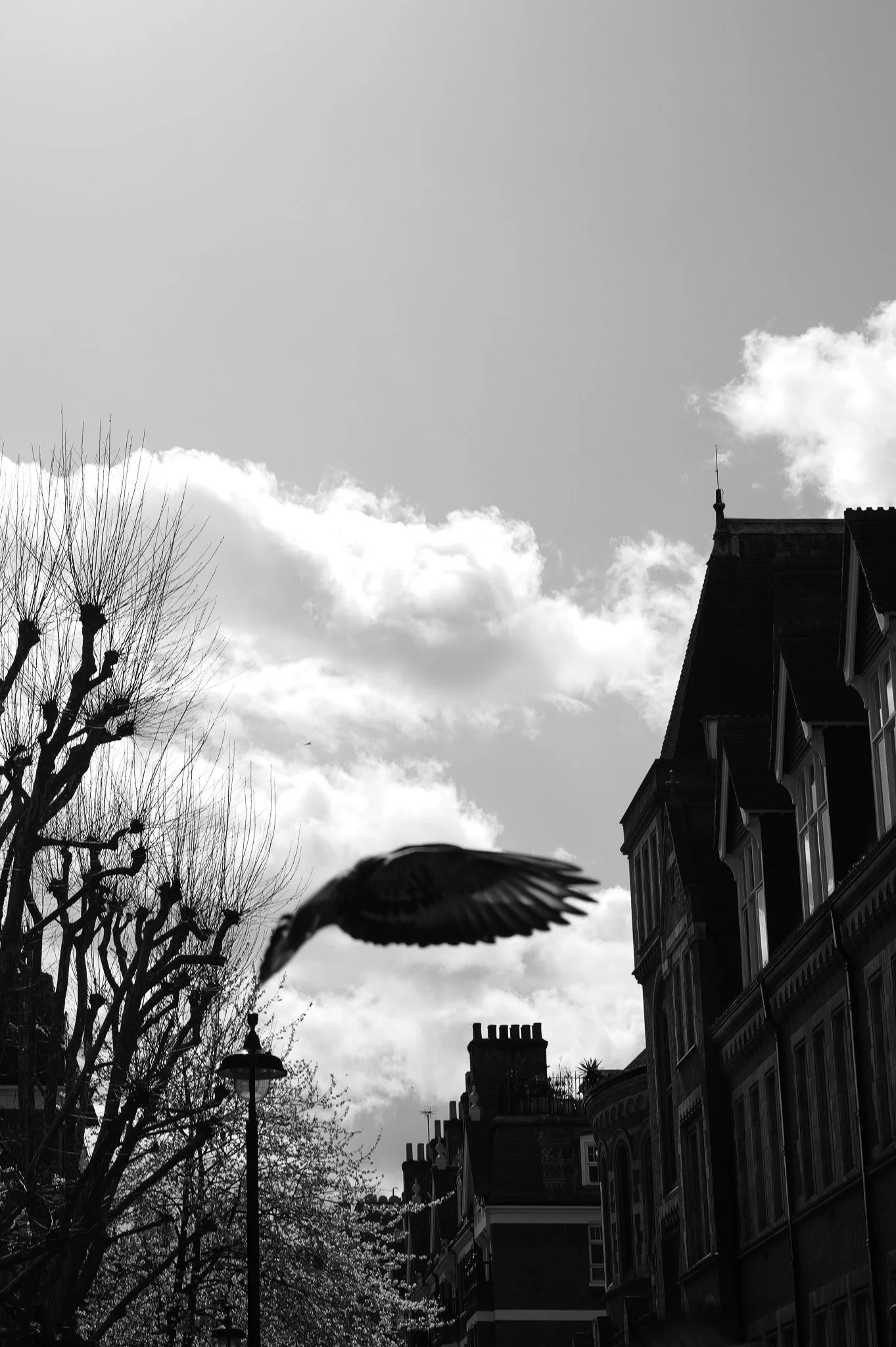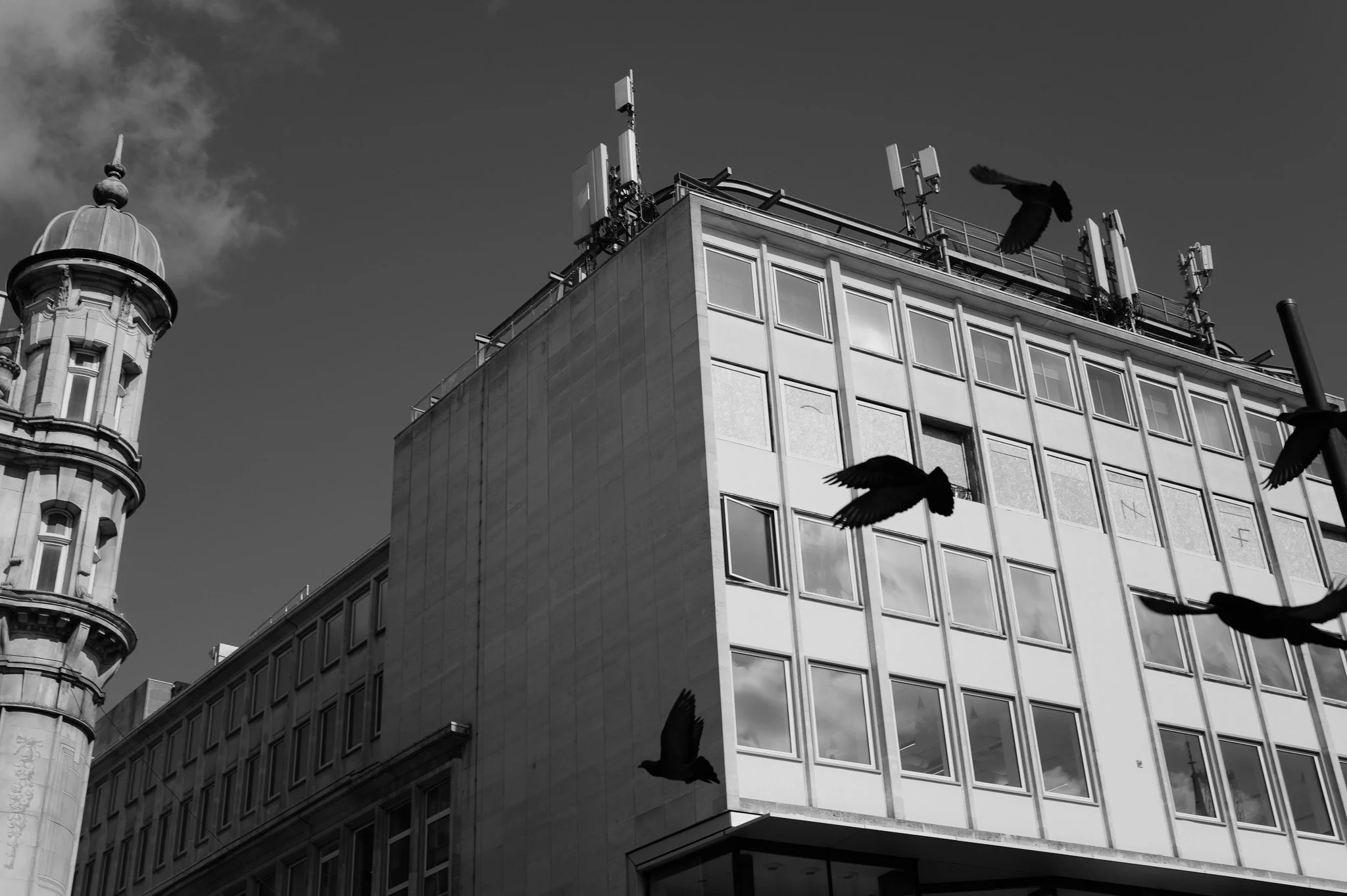 After about 30 minutes though, the camera just disappeared. I stopped thinking about the controls and started thinking about the shots. An early opportunity was a gang of pigeons congregating on a side street. That first blurry shot due to low shutter speed got me to stop, slowdown and figure out a setup for the walk.
